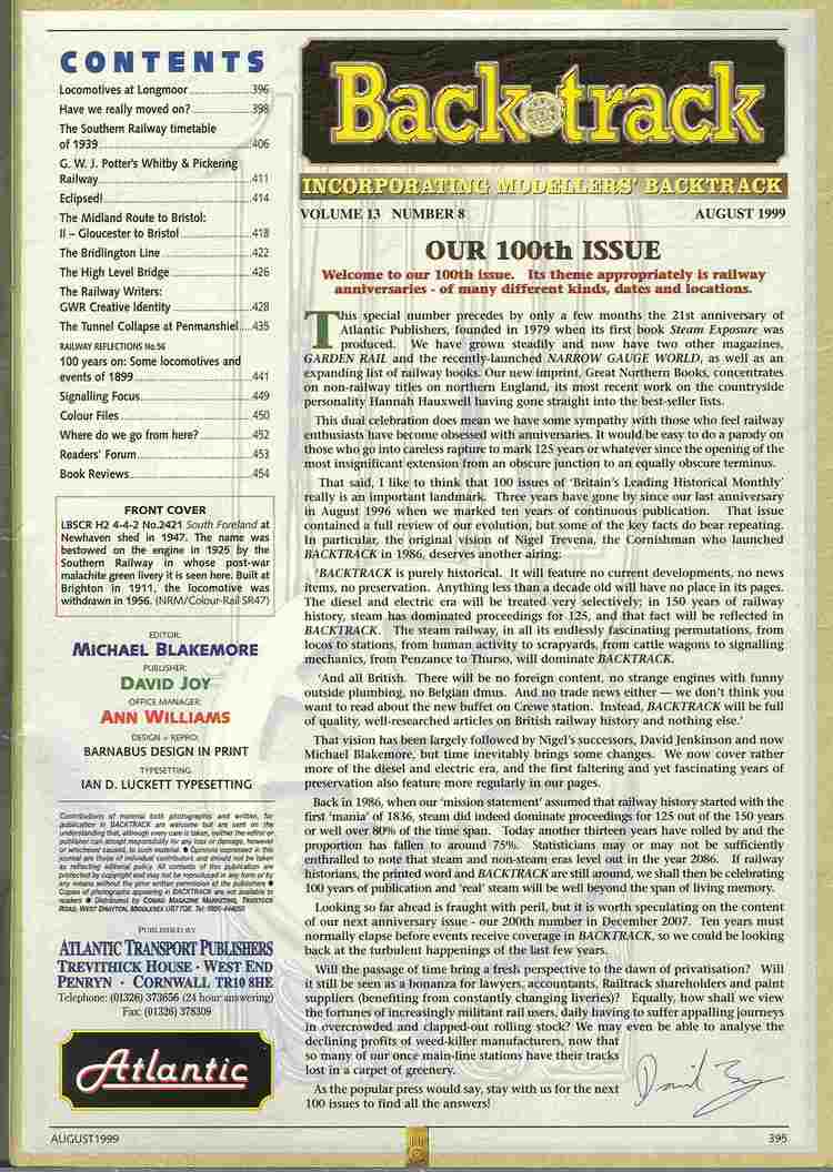There have been four special issues (two incorporated within the magazine, and of questionable quality, one published as a Supplement on the LMS (superior to the LMS Journal), and one publshed as a separate (on the LNER: excellent, but too detached). There was also Bedside Backtrack: excellent, but not really bedside reading as it contains an in-depth survey on early Pullman cars in Britain, and one of the best pieces written by Philip Atkins. The choice of illustrations could have been better: there are too many by the late Eric Bruton. It was presumably a commercial failure as it was not repeated.