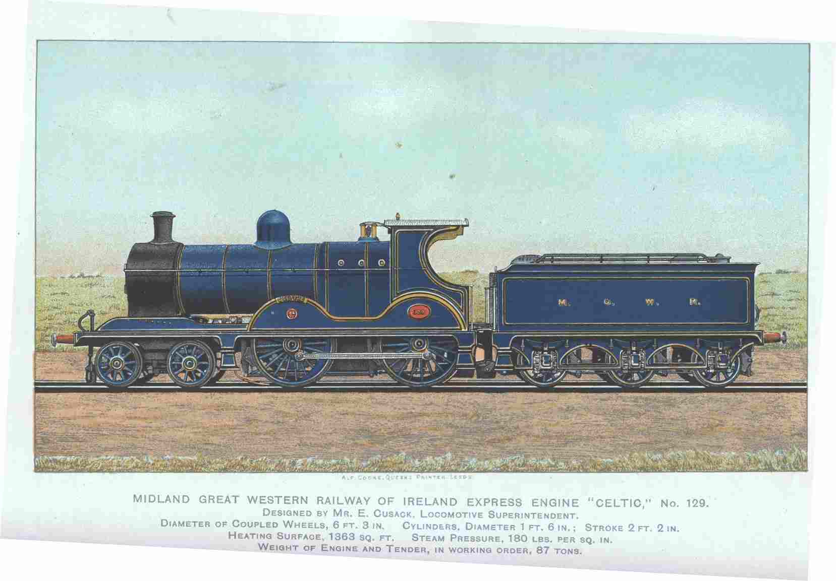 MGWR 4-4-0 129 Celtic designed Cusack (Rly Mag., 1902, 11, fp. 289)