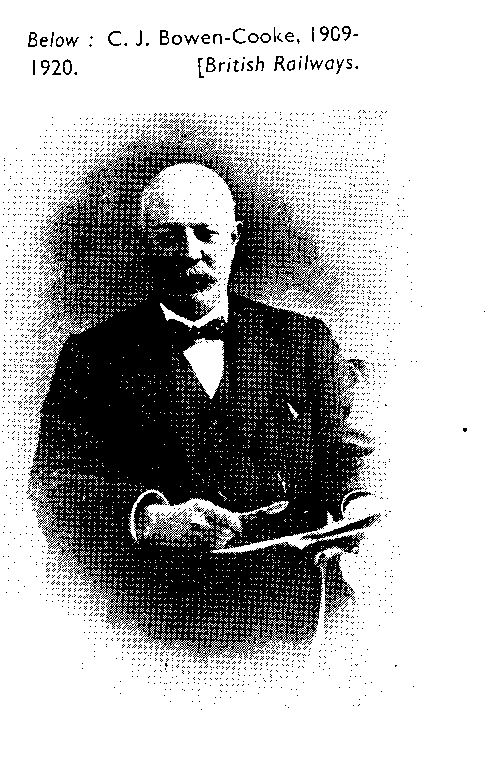 Cox considered that Bowen-Cooke "merits our special attention on several counts". Before he took office he had served under F.W. Webb who had introduced large scale compounding, and under G. Whale who had thrown it all on the scrap heap. He presided over the LNWR locomotive department in its finest hours, when to Whale's supremely simple designs he had added superheating to call forth performances the like of which had never been seen on this line before. Unlike most of his brethren he was essentially a Motive Power man, in that two years after the completion of his pupilage at Crewe, he was appointed in 1880 as assistant to the Running Superintendent of the Southern Division and he continued in that department in positions of increasing responsibility until in June 1909 he succeeded Whale as CME. A bluff, eminently level headed man, much given to tweedy suits, his writings and commentaries which have come down to us are solidly sensible and practical.